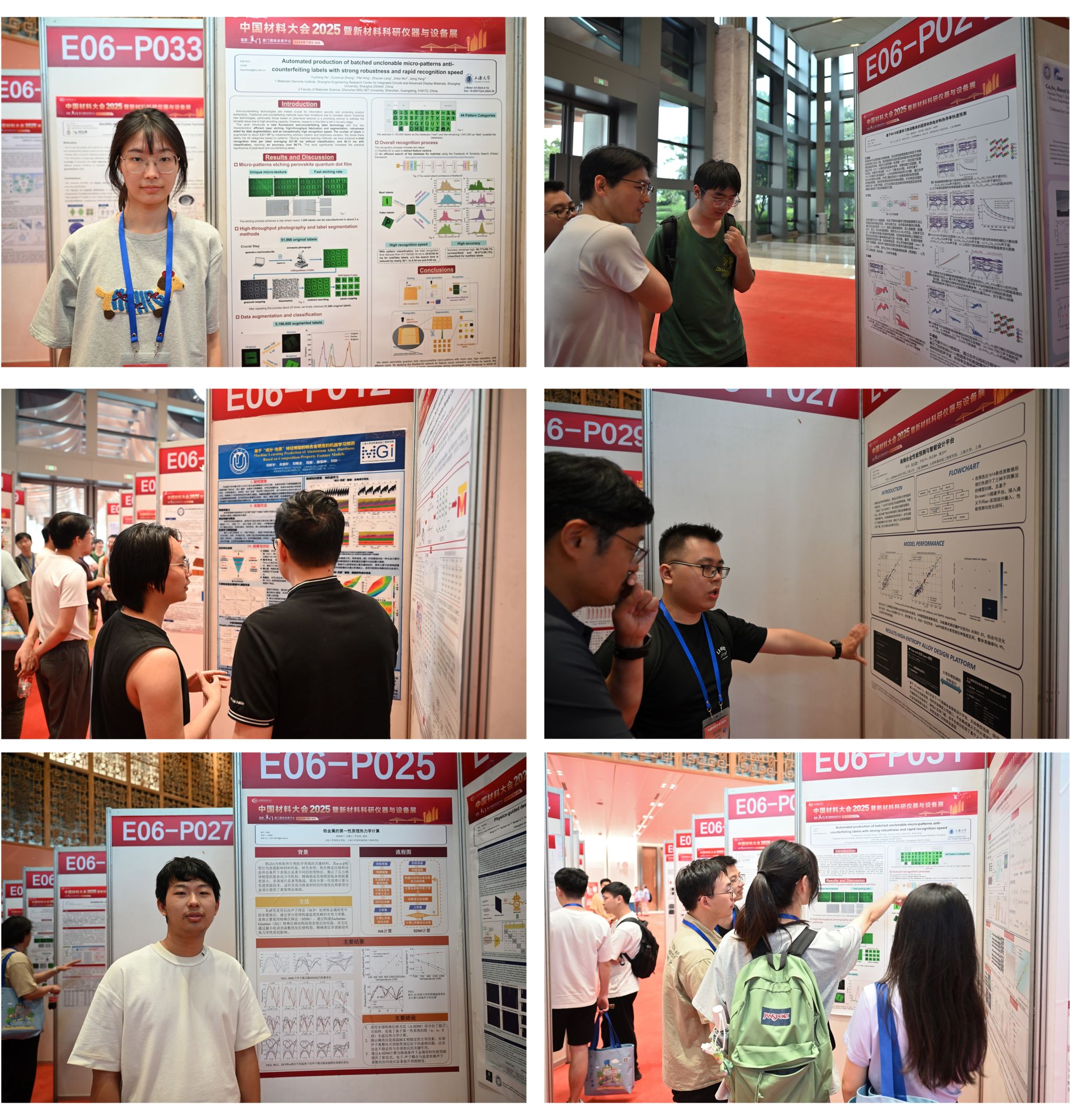 在为期三天的会议中,来自钱伟长学院的在读本科生与往届直升研究生等33名同学全程深度参与,展现出良好的学术素养。其中,2019级贺雨峥、2020级羊英涛、2020级倪新宇、2021级杨泉、2022级周天毅、2022级胡锦昶以及2022级郭绍军,共7名同学以墙报形式展示了各自的最新研究成果;另外,2020级杨钰嫣、2018级陆佳宜和2018级刘行健同学分别通过快闪报告和口头报告的形式,清晰流畅地分享了他们的最新研究发现。这些高质量的学术成果不仅体现了上大学子在材料基因工程与人工智能交叉领域的创新思维和研究实力,更展示了国产亚洲精品美女久久久在跨学科创新人才培养方面的显著成效和独特优势。